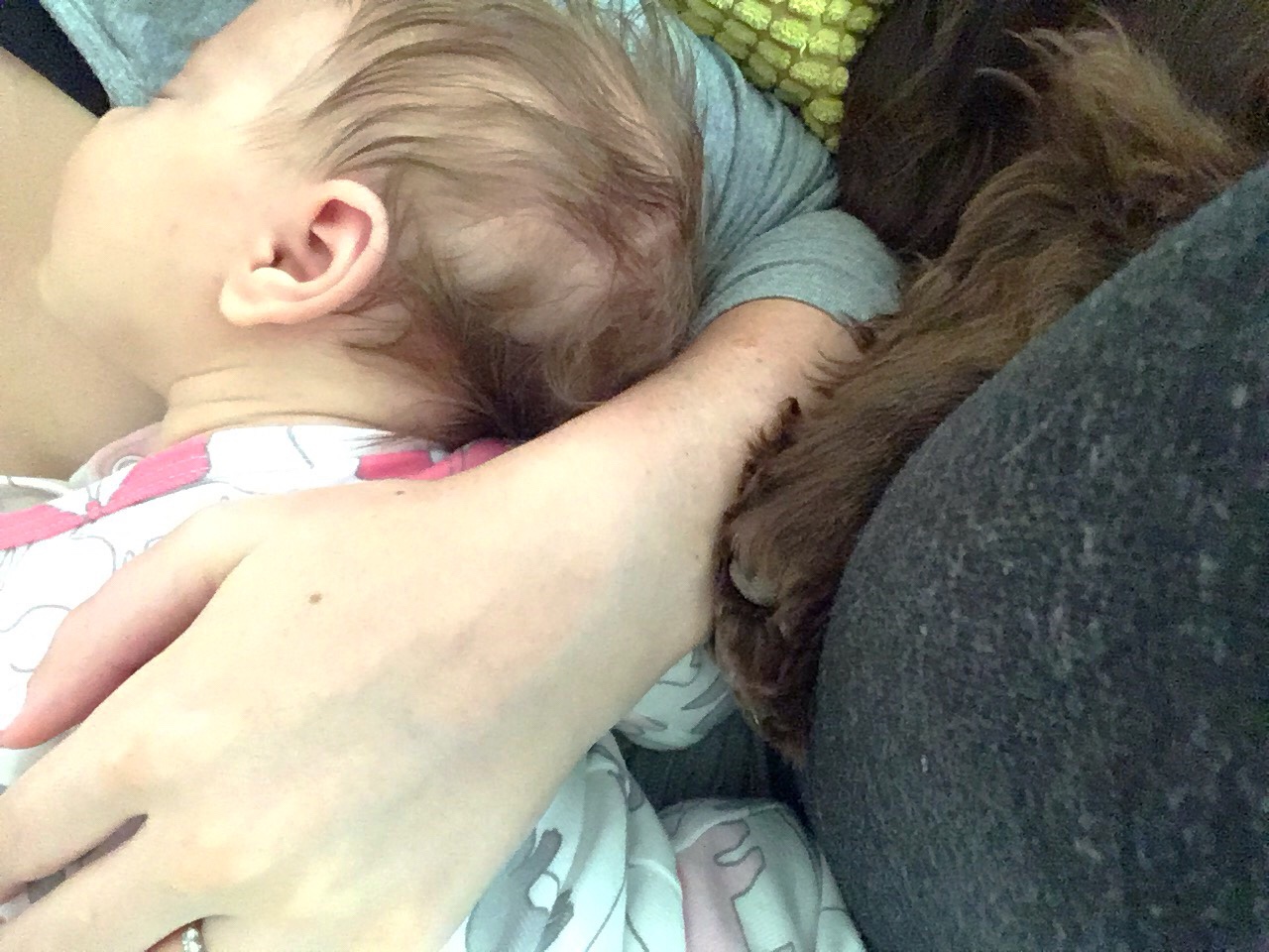 Then he settled down next to us after watching her and fell asleep!
