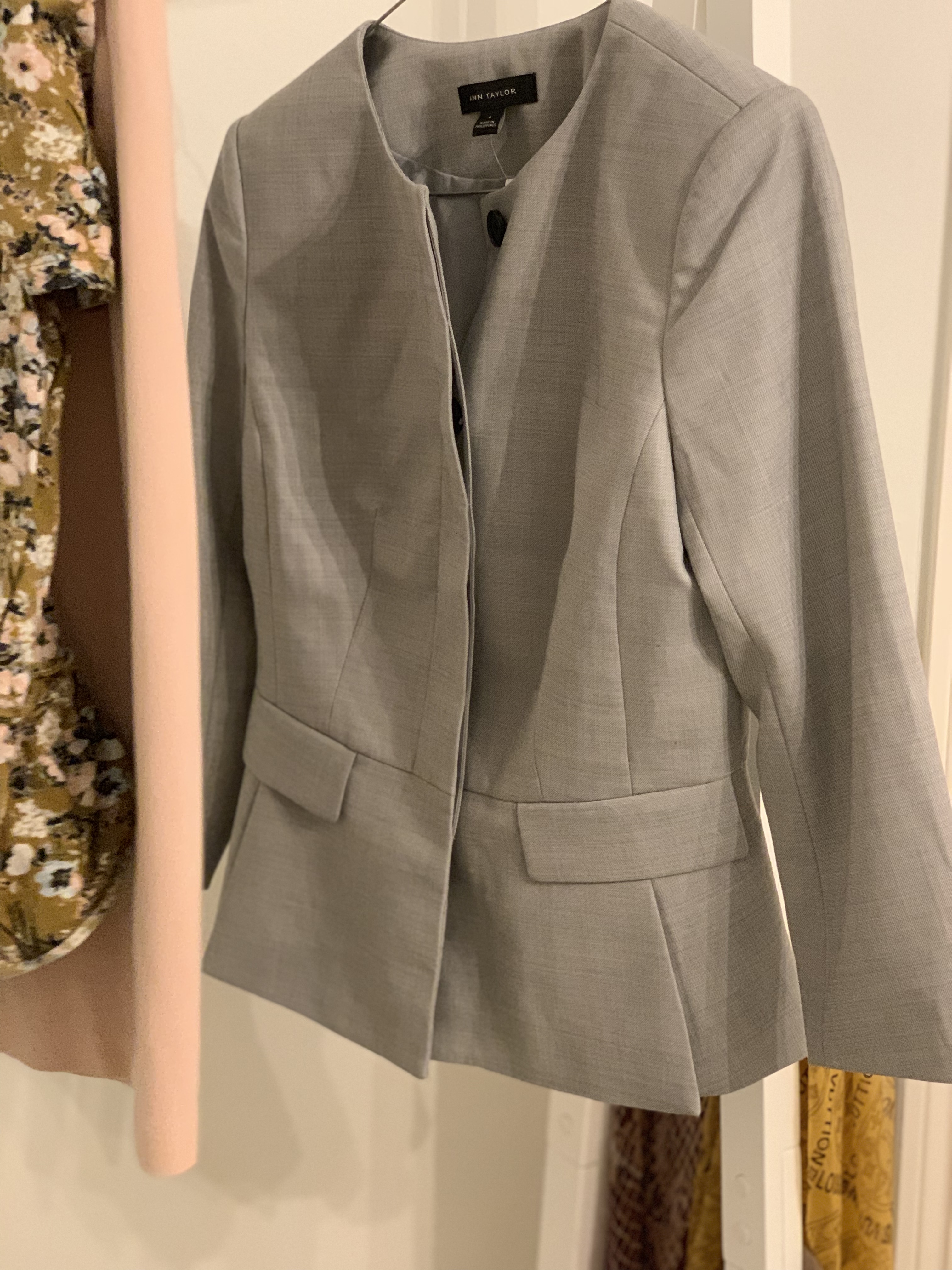 Now, I think it’s good to start with the basics and build from there, all work wardrobes need the classic black blazer. Then from there I have added a tweed, burgundy, red and more recently a grey one from Ann Taylor.